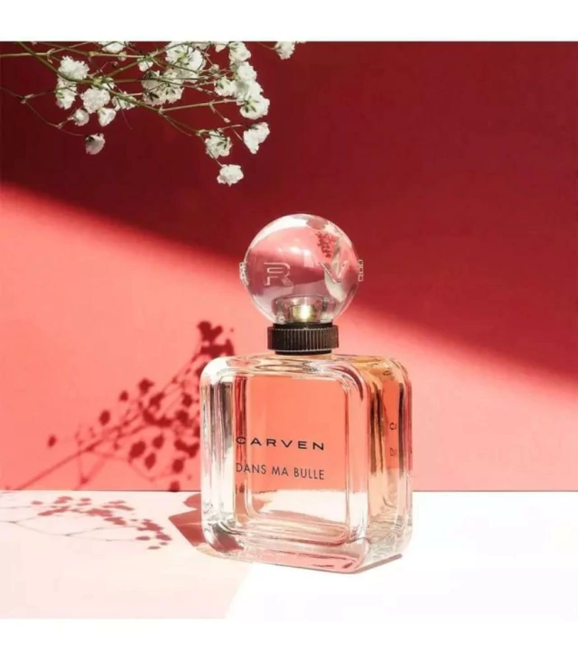 O novo perfume Dans Ma Bulle é um convite a viver e compartilhar o mundo da menina Carven. Esta fragrância oferece um novo vício, um concentrado de frescor, fantasia e sensualidade. Para raparigas curiosas e ousadas, saber misturar elegância parisiense e descontracção. Nota de Cabeça: O frescor frutado espumante da Litchi Rose se mistura com a delicadeza floral da Peônia para um gancho muito natural.