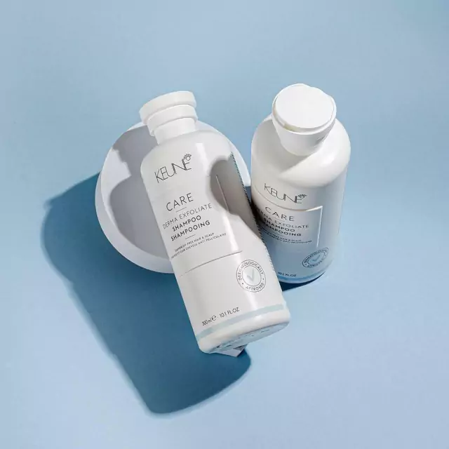 Shampoo Anticaspa Care Derma Exfoliate Keune possui ação bactericida, desenvolvida com exclusiva Tecnologia Octopirox e enriquecida Minerais Essenciais, LP300, Betaínas e Bio-Sulfur que acalmam a pele irritada e promovem uma leve esfoliação sobre o couro cabeludo, removendo escamações e aliviando as irritações. Combate a caspa seca e a caspa oleosa eliminando-a dos cabelos e do couro cabeludo, além de evitar sua reincidência. Limpa suavemente, proporcionando o equilíbrio do couro cabeludo e dos cabelos, com deliciosa sensação de relaxamento e bem-estar.