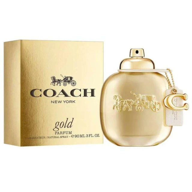 O perfume Women Gold Coach está disponível nas volumetrias de: 30ml, 50ml e 90ml